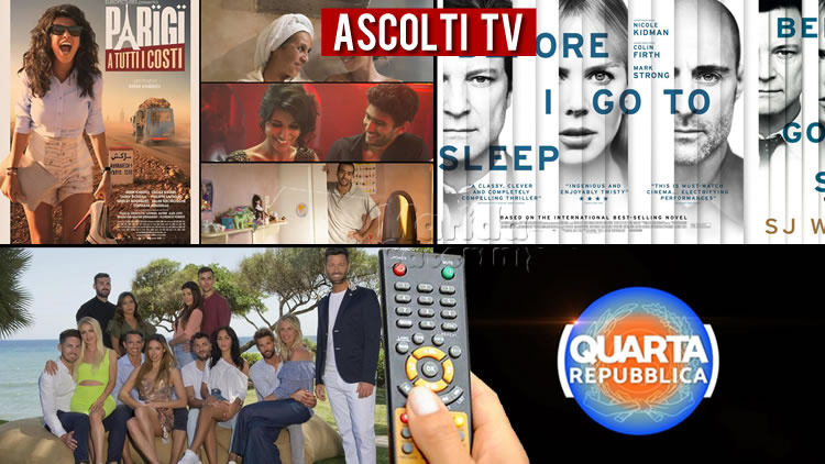 Su Rete 4 Stasera Italia Estate ha registrato 1.045.000 con 5.1% e 1.201.000 con 5.5%.