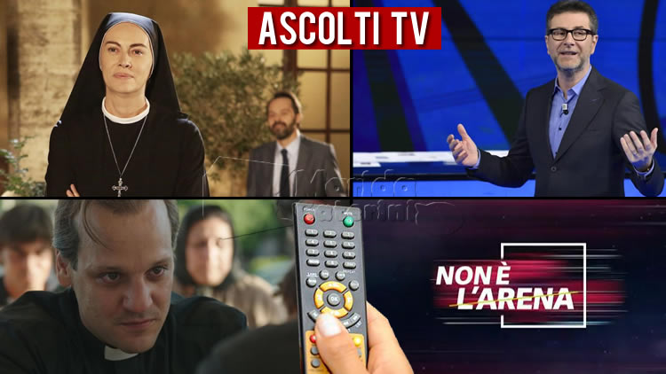 Su Rai 1 Domenica In: 3.524.000 con 16.9% e 3.114.000 con 16.2%. Noi… A Ruota Libera: 2.922.000 con 14.5%.