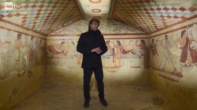 Alberto Angela si sposta nel Lazio, a Cerveteri. Grazie alla Necropoli della Banditaccia, torniamo all’epoca degli etruschi. Dentro queste tombe è possibile trovare oggetti di tutti i giorni che descrivono quella società. All’interno della famosissima Tombe dei rilievi c’è persino una cassaforte.
