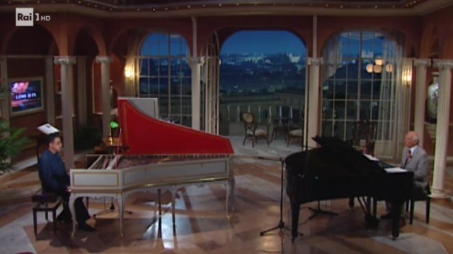 Piero Angela e Baiano suonano lo stesso pezzo uno al pianoforte e l’altro al clavicembalo, per mostrarne le differenze e le analogie.