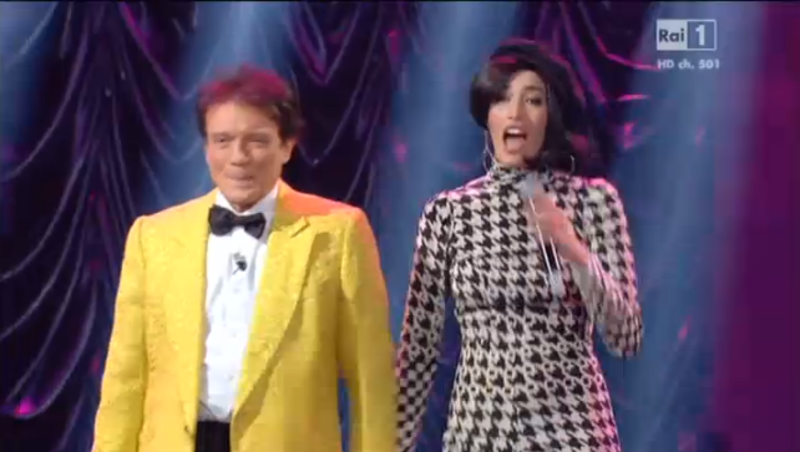 Ed ecco arrivare sul palco Nina Zilli, che canta “Sono bugiarda”. Atmosfera anni ’60 con “Nessuno mi può giudicare”, cavallo di battaglia di Caterina Caselli: i due la cantano attorniati dal corpo di ballo. Quest’anno il pezzo compie 50 anni: fu eseguito per la prima volta al Festival di Sanremo. Ancora un altro brano famosissimo dell’ex casco d’oro: “Perdono”. Poi “Insieme a te non ci sto più”.