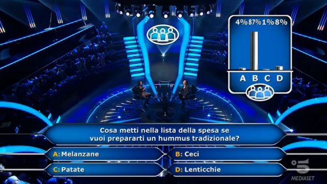 Il responso della platea non potrebbe essere più netto: il 74% sceglie l’opzione “C”. È quella giusta e regala i 70mila euro ala concorrente.