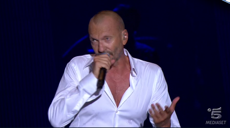 Di nuovo Forum di Assago con un’ altra canzone. Altro amico di Biagio, che appare dal grande schermo: è Eros Ramazzotti che accenna “Non è mai stato”, che ricanta Biagio.