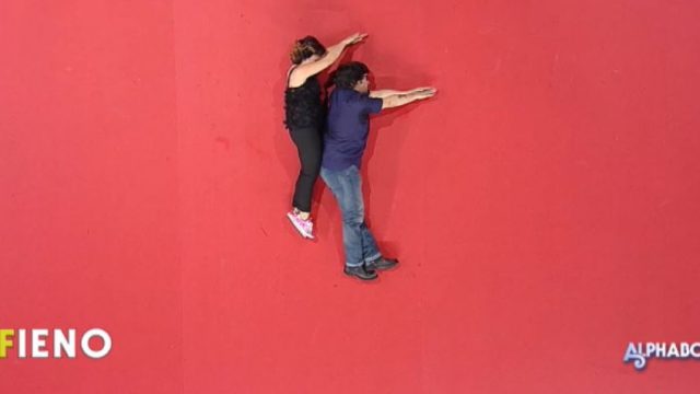 Durante “Alphabody” Ricky Menphis e Valeria devono comporre tutte le lettere che compongono la parola fieno con i loro corpi.