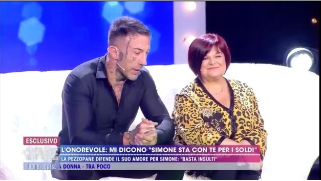 Simona Izzo vuole sapere se la Pezzopane è innamorata di Simone come una madre o come una partner. Stefania ribatte che l’istinto materno lo ha solo per sua figlia. L’onorevole ha dalla sua parte Alessandra Mussolini, anche se non condivide le sue posizioni politiche.