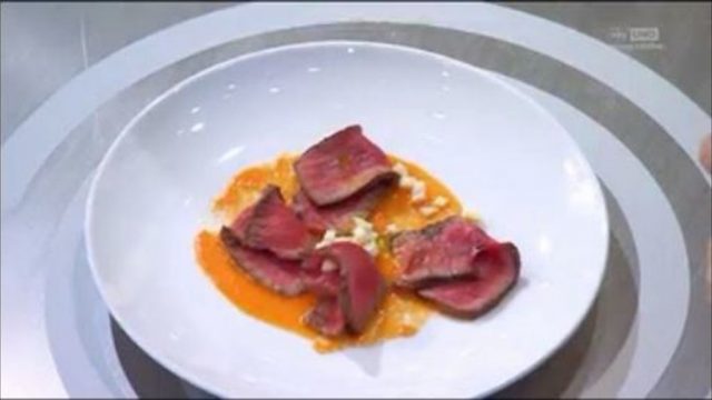 Giunti a questo punto della competizione, i giudici sono molto esigenti: sia per quanto riguarda la concezione del piatto che la sua realizzazione, impiattamento compreso. Come migliori, i giudici chiamano Simone, Alberto e Marianna: vince proprio Marianna con il suo carpaccio affumicato, mentre Alberto viene scelto per la terza volta senza riuscire ad avere la meglio.