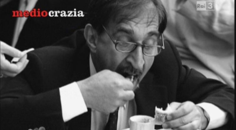La voce fuori campo di Pippo Baudo lancia un’invettiva contro la tv volgare sia nei contenuti che nelle immagini; ecco dunque MedioCrazia, un montaggio dei gestacci dei politici con colonna sonora di Trainspotting.