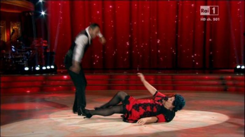 E’ il turno di Giusy Versace in coppia con aimondo Todaro. La Versace è l’atleta paralimpica, senza gambe che si mette alla prova come ballerina.Ottima prova, la commozione si tocca con mano. E la stessa Giusy piange. La giuria le fa i complimenti e il commentatore a bordo campo Massimo Giletti fa notare che l’Italia ha bisogno di un messggio di ottimismo e di speranza. E la presenza della giovane Versace è in grado di darlo. Il totale per la coppia è 44 punti, uno dei più alti della serata.