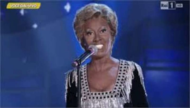Silvia Salemi, interpreta Patti Pravo, canta “La bambola”. Nell’immagine generale somiglia poco a Patty Pravo, il look è giusto.