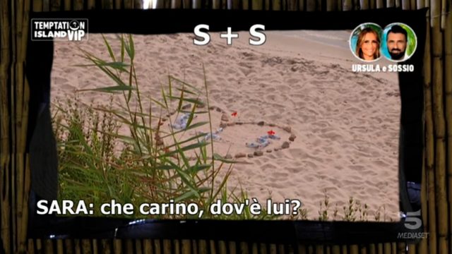 Si passa a parlare di Sossio ed Ursula. Sossio si sveglia di ottimo umore, canta e balla. Nel frattempo Ursula è chiamata nel pinnetto per guardare un filmato del suo fidanzato in compagnia della tentatrice Sara. Sossio disegna un cuore con i sassi sulla spiaggia ed all’interno scrive “S+S“. Ursula sconvolta scappa via dal pinnetto, interrompendo la visione, e si chiude in bagno a piangere. Confortata dalle sue compagne, trova poi il coraggio di tornare e continuare a guardare.