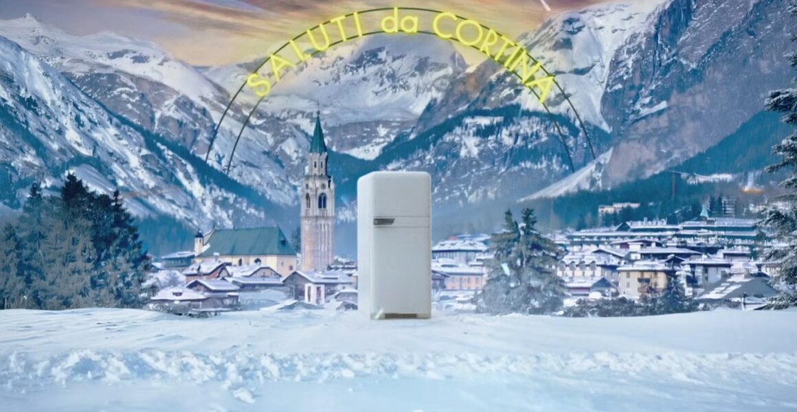 A questo punto, prende il via la narrazione vera e propria. Lo sfondo nel quale è immerso il frigorifero si trasforma nelle città di Milano e di Cortina d’Ampezzo, due delle sedi dei Giochi Olimpici. Di fronte alla telecamera, si alternano le varie automobili protagoniste della narrazione.