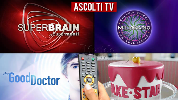 Ascolti TV Ascolti TV venerdì 1 febbraio 2019, Chi vuol essere milionario al 13.4%, Superbrain all’11.6% Redazione 2 Febbraio 2019 5 Minuti di lettura 0 Commenti Basta il 13.4% a Gerry Scotti per consegnare a Canale 5 la vittoria della prima serata. Mantiene Superbrain su Rai1. Continua a Leggere