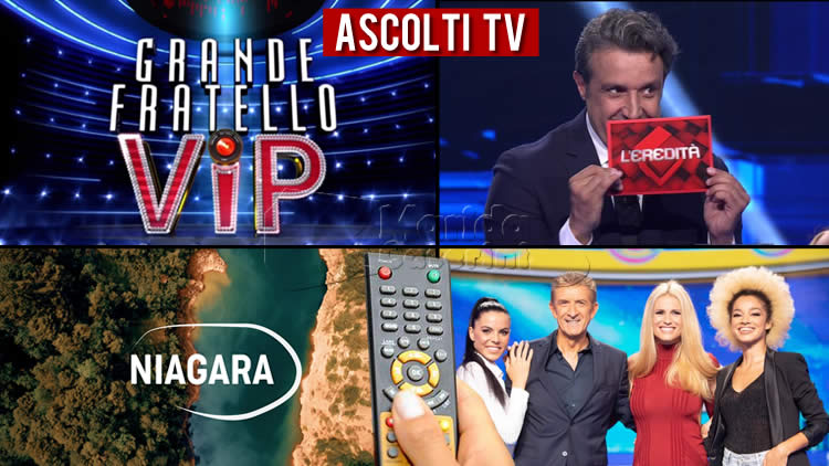 Quattro punti di share dividono Rai 1 da Canale 5. L’esordio della terza edizione del GF si ferma al 20.9%. La vita promessa con Luisa Ranieri sfiora il 25%.Buon debutto per Licia Colò e Niagara su Rai2. La prima puntata di L’Eredità oltre il 23%.